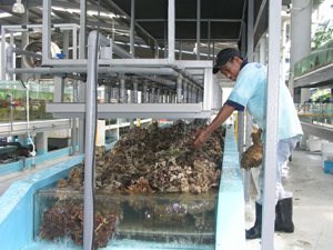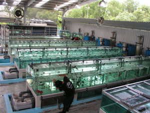 Incoming fish are unpacked in separate quarantine facilities where we drop the pH in the receiving blocks down to approximately pH7 by the use of carbon dioxide before the placing of the fish, after which we treat all incoming fish with fresh water baths & our propriety treatments before placement in their respective blocks.